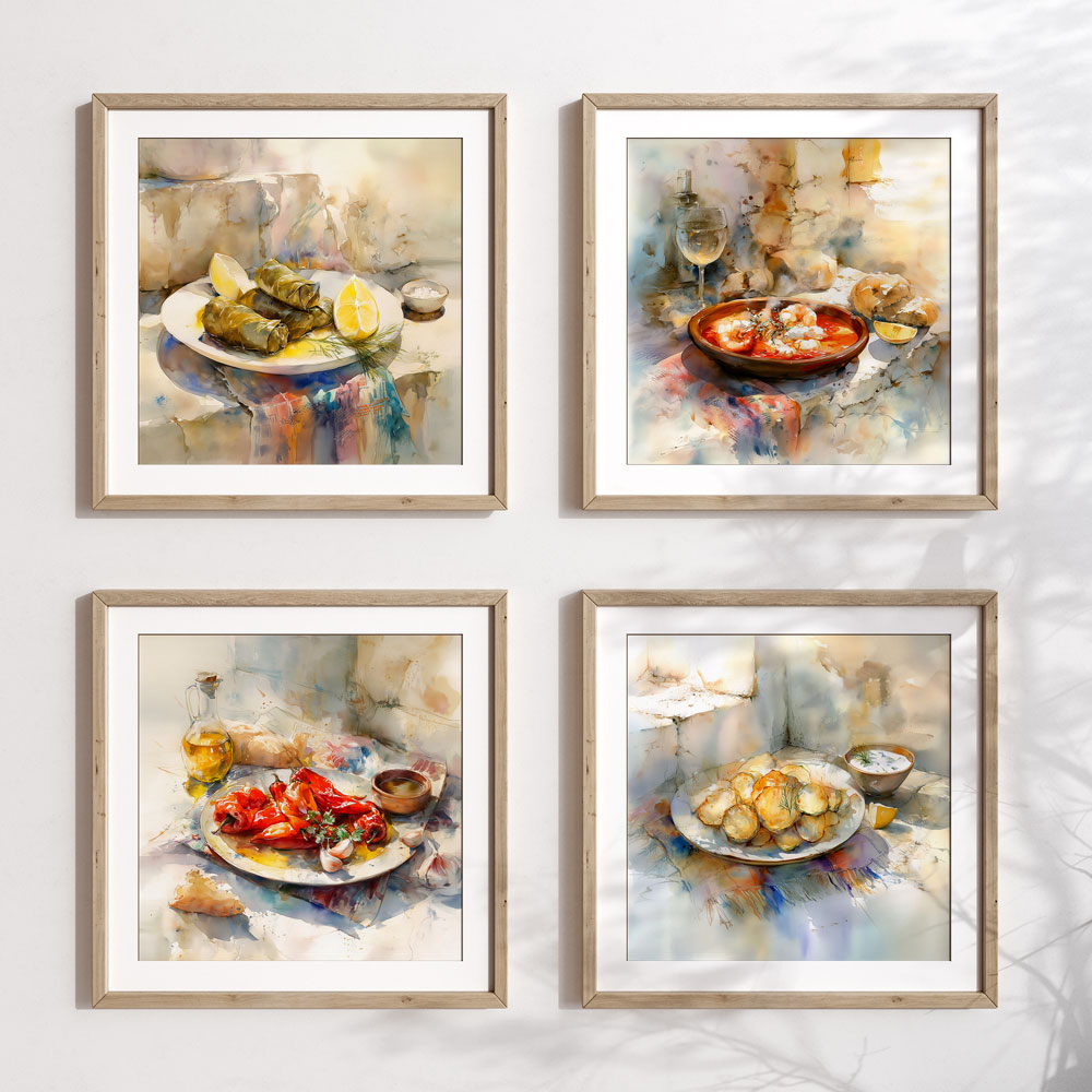 Each painting holds the quiet joy of island afternoons — the slow air, the gentle colors, and the soft stillness that follows a shared meal.